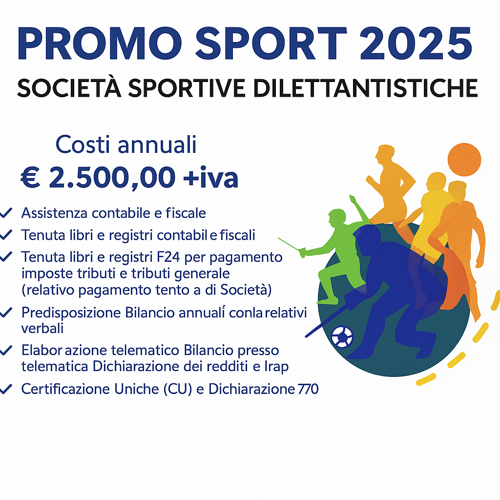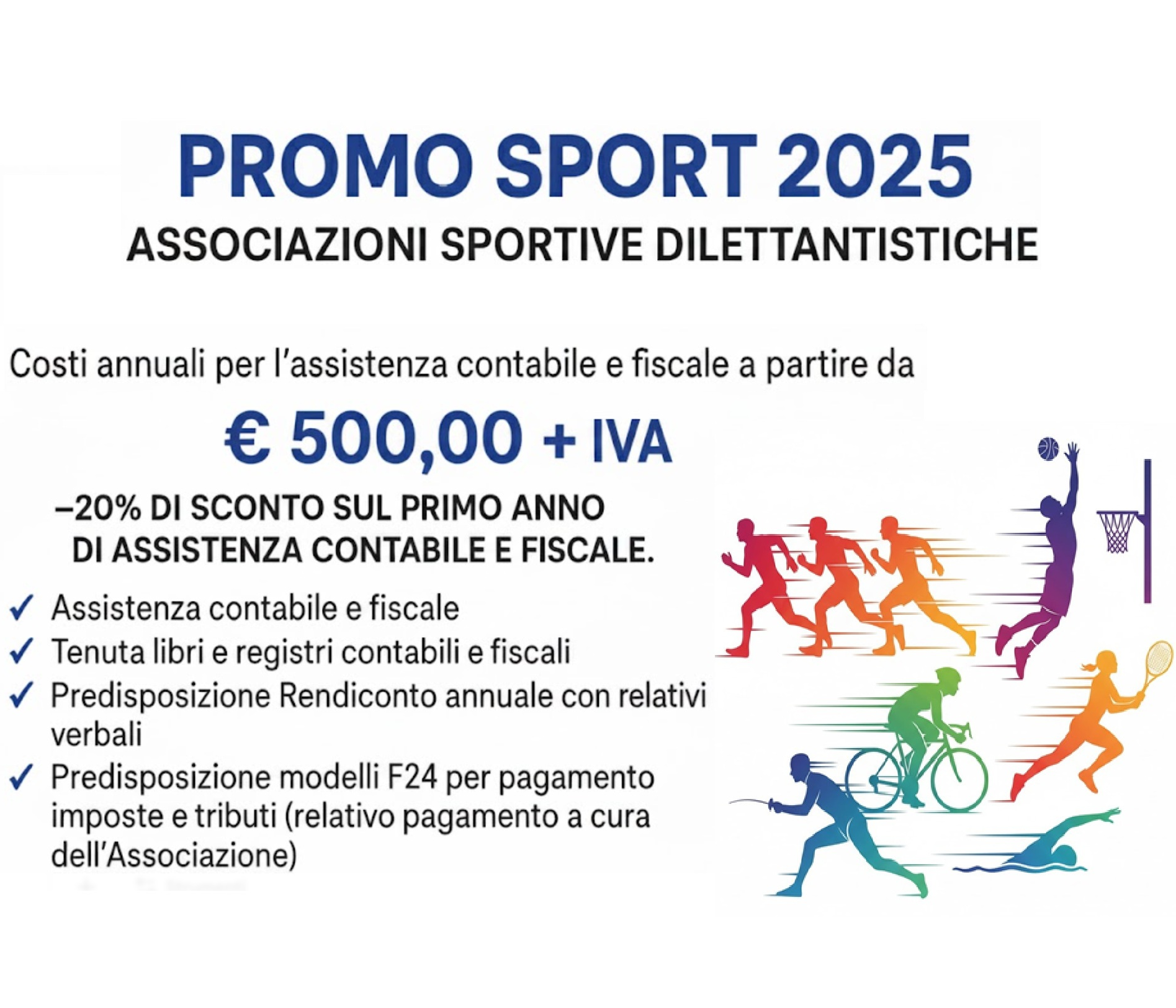 Con Promo Sport 2025, lo Studio Angrisani offre assistenza contabile e fiscale specializzata a condizioni agevolate, pensata per chi gestisce realtà sportive con passione, trasparenza e professionalità. 🏅